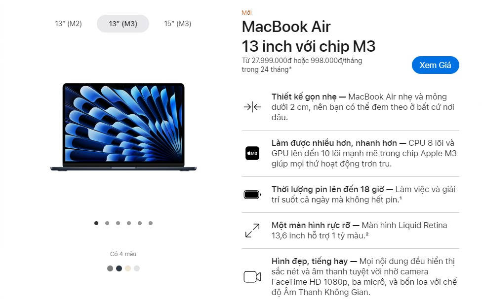 Với cấu hình 8GB 512GB, Macbook Air M3 hướng đến: